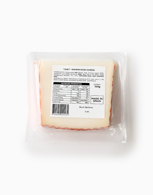 Pasteurized milk (Goat), Salt, Firming Agent (509), Lysozyme(from egg), Enzyme (Animal Rennet).